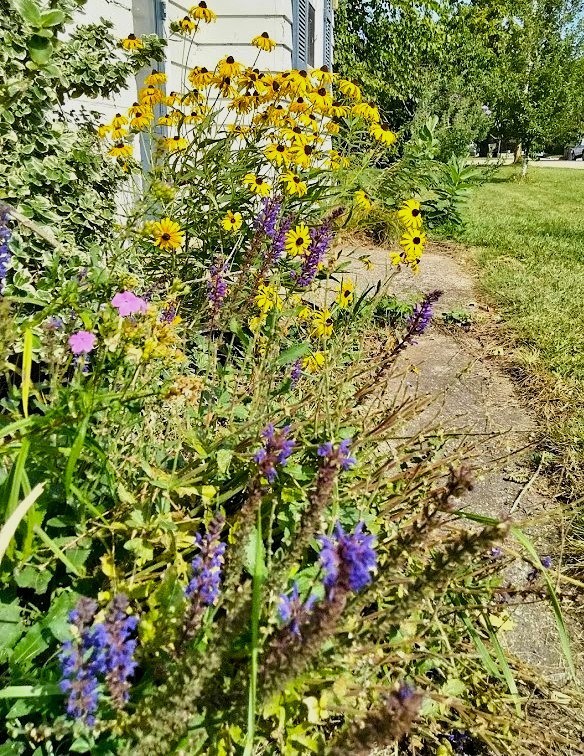 You may ask: isn’t a grass lawn a native perennial? Yes it is. However, mowed lawns offer very little carbon sequestration and do not provide good pollinator habitat or wildlife food, since it offers no flowers, seeds or berries.